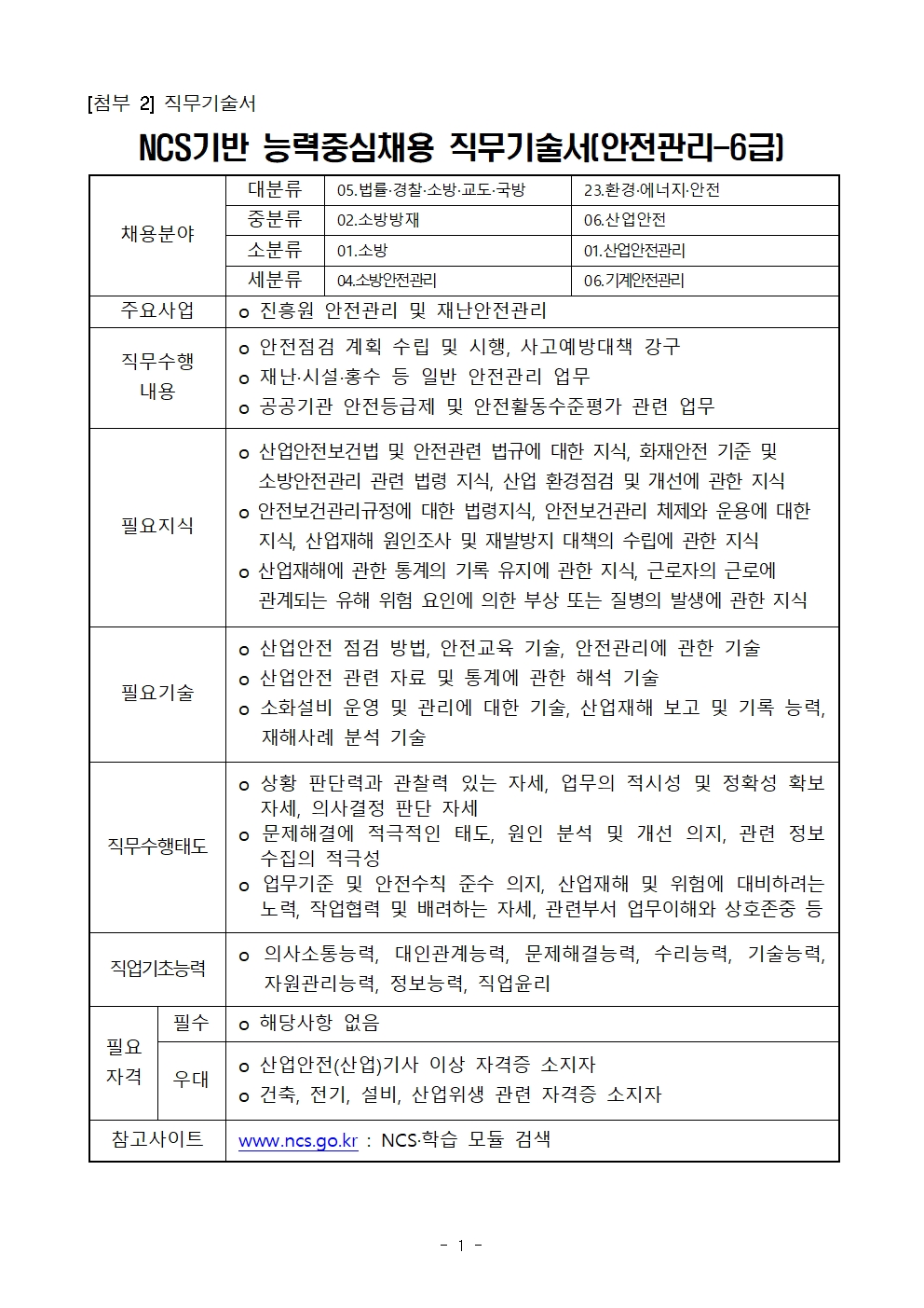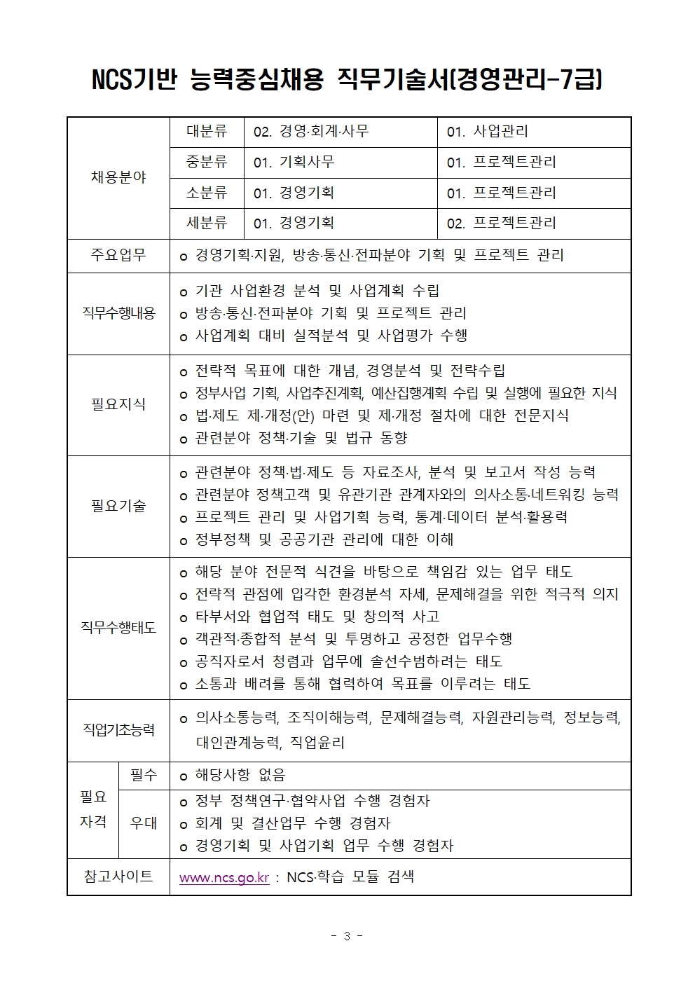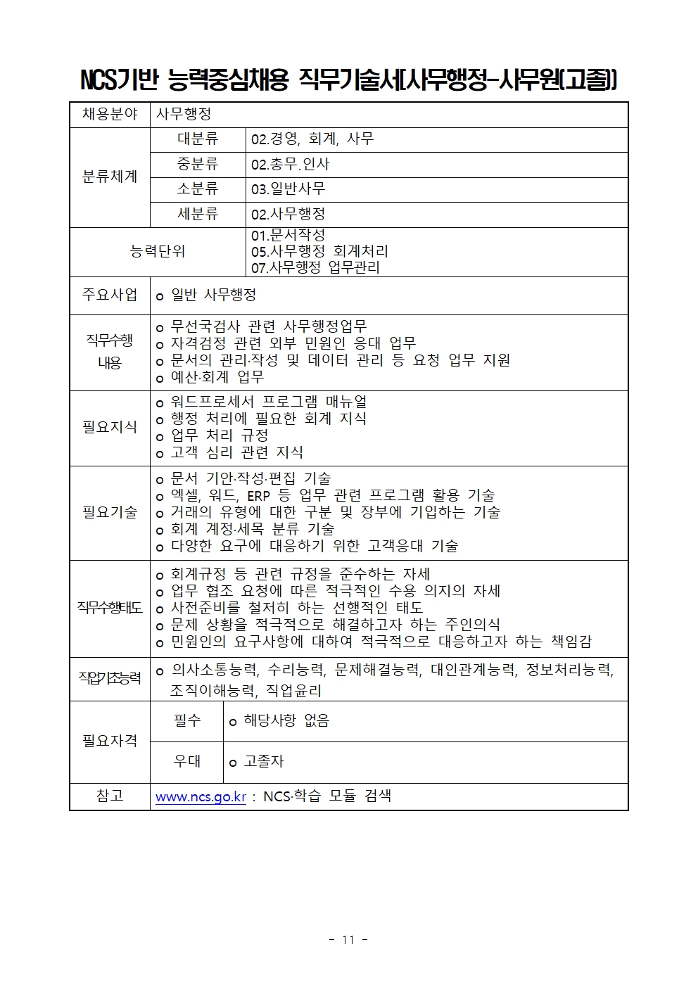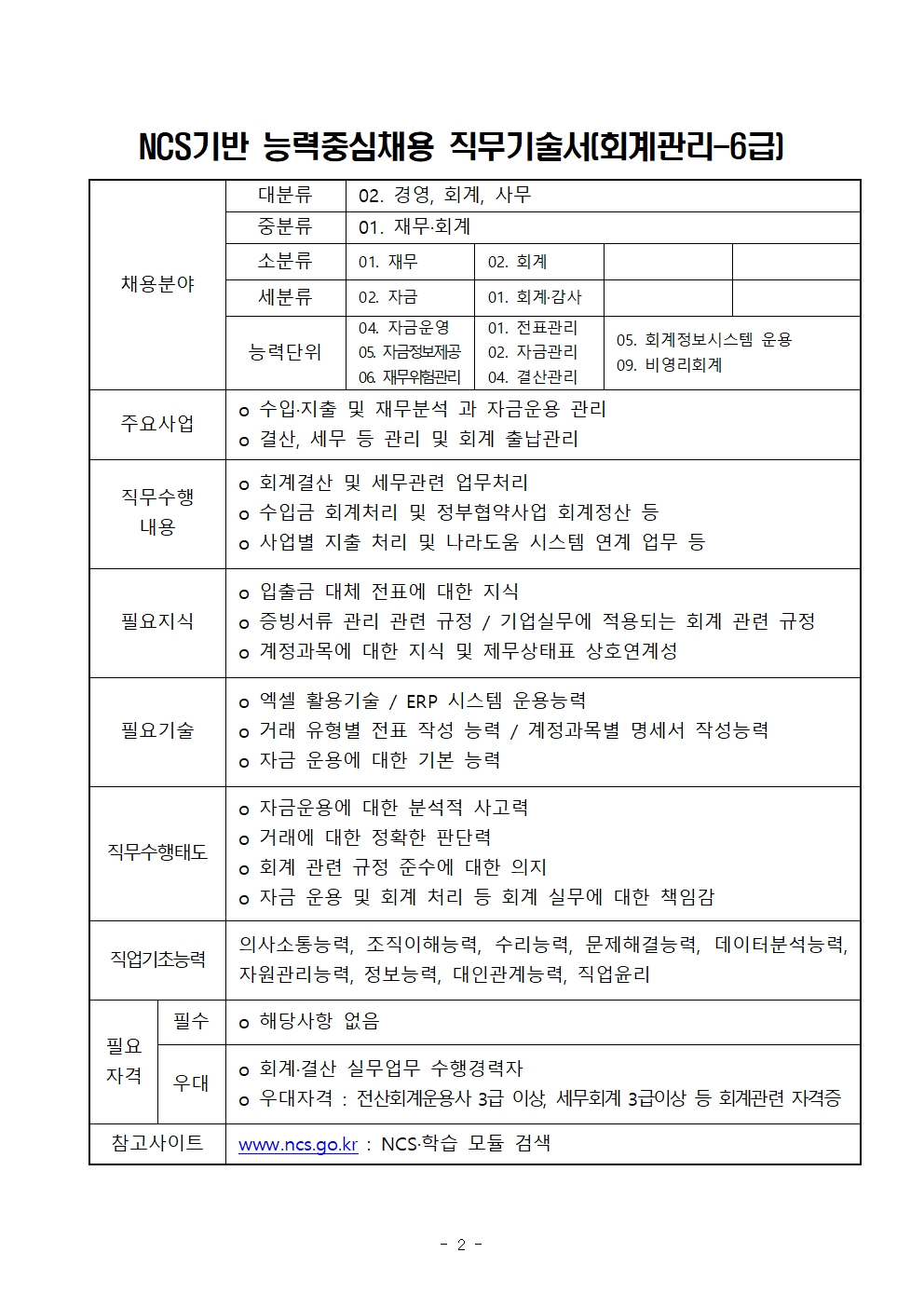 ※ 주요업무는 NCS기반 채용분야별 직무기술서 참조