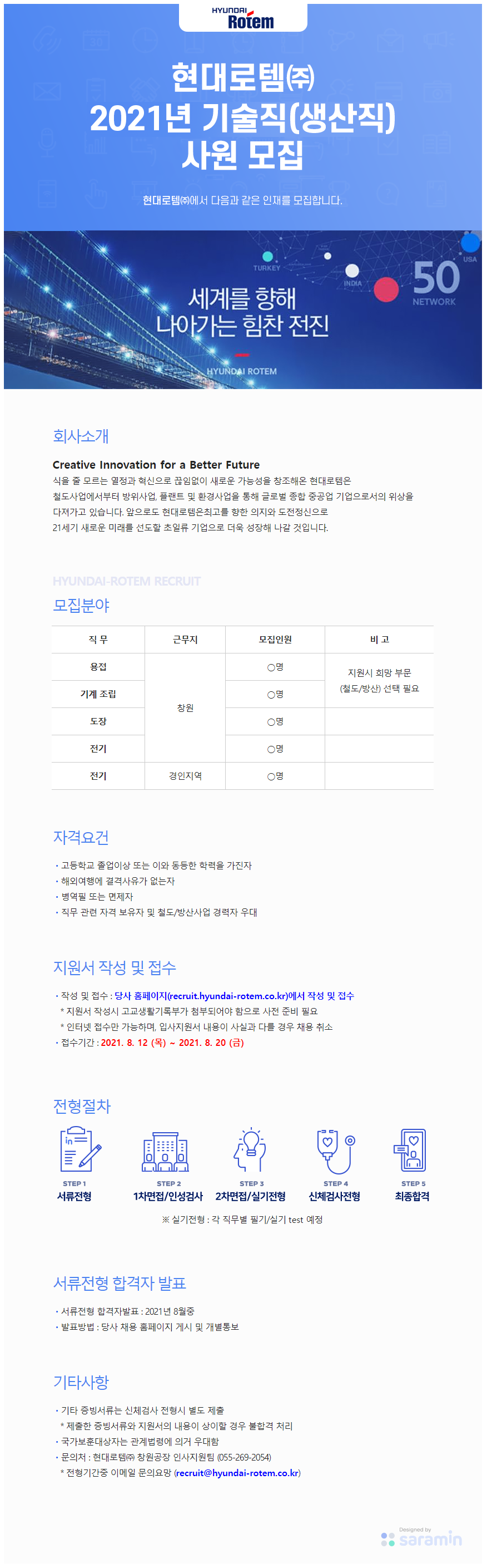 <전기전자과> 현대로템 기술직(생산직) 사원 모집