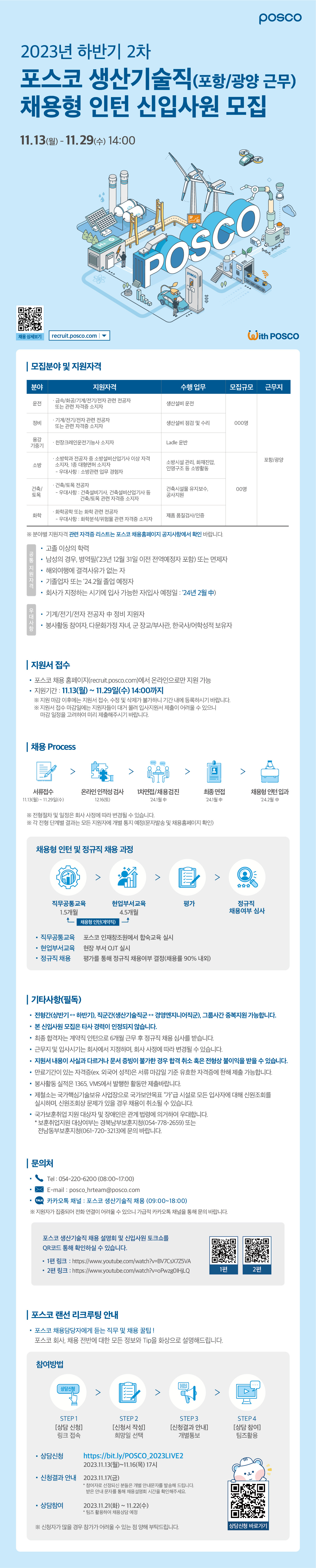 2023년 하반기 2차 포스코 생산기술직 채용형 인턴 신입사원 모집